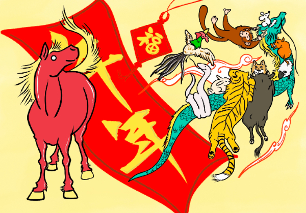カラフルに描いたイラスト。