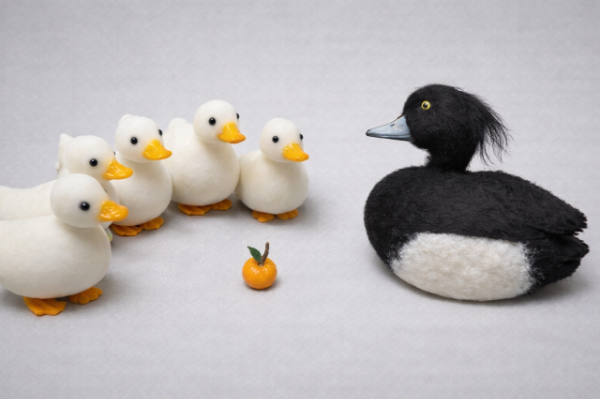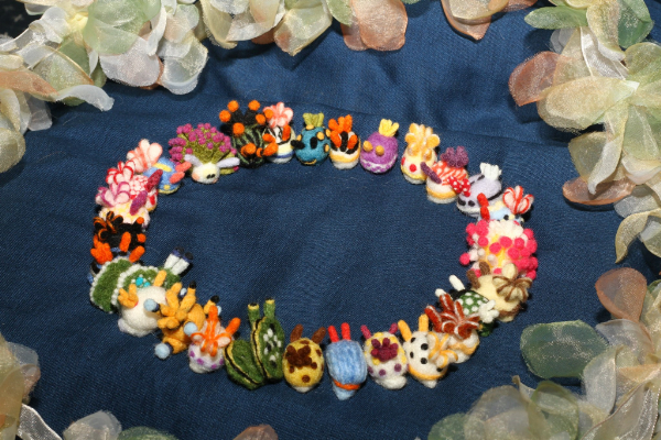 羊毛フェルトやぬいぐるみの立体作品。