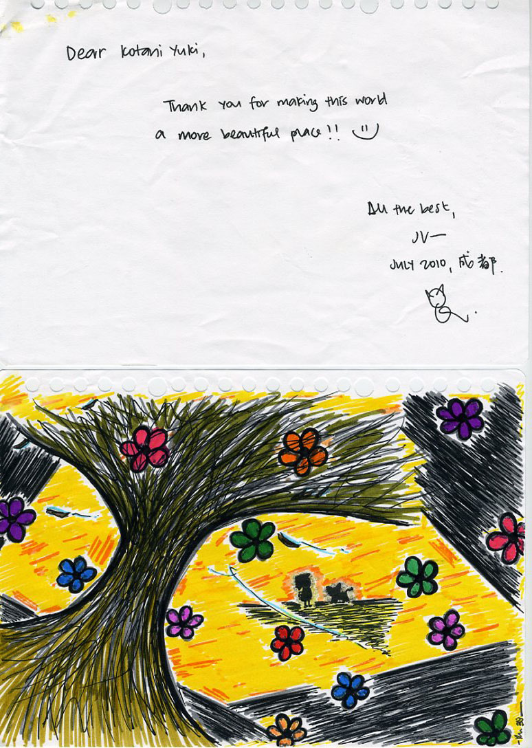 僕はその事自体にももちろん感動したけれど、こうして日本から作品を持ってきて、それを見た人が感動してその作者へ自らの絵で感謝の気持ちを伝えるという、国や言語は違えど、まさにアートの力で国際交流が出来たと言う事をはっきりと確認できたようでとてもうれしかったです。
